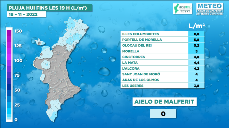 El pas d'aquest front ha vingut d'una baixada de temperatures, que ha fet que les màximes de hui s'agen registrat al llarg de la pasada nit. Les temperatures mínimes de hui, es donaran al final de la jornada.