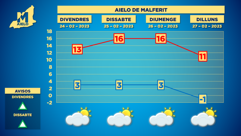 Continuarem pendents de les actualitzacions de les previsions pel que puga passar, ja que dilluns i dimarts tindrem molt de fred en altura i cualsevol possibilitat de precipitació podría ser de neu en cotes baixes, però com diguem la possibilitat de vore pluja i neu a dia de hui es baixa.